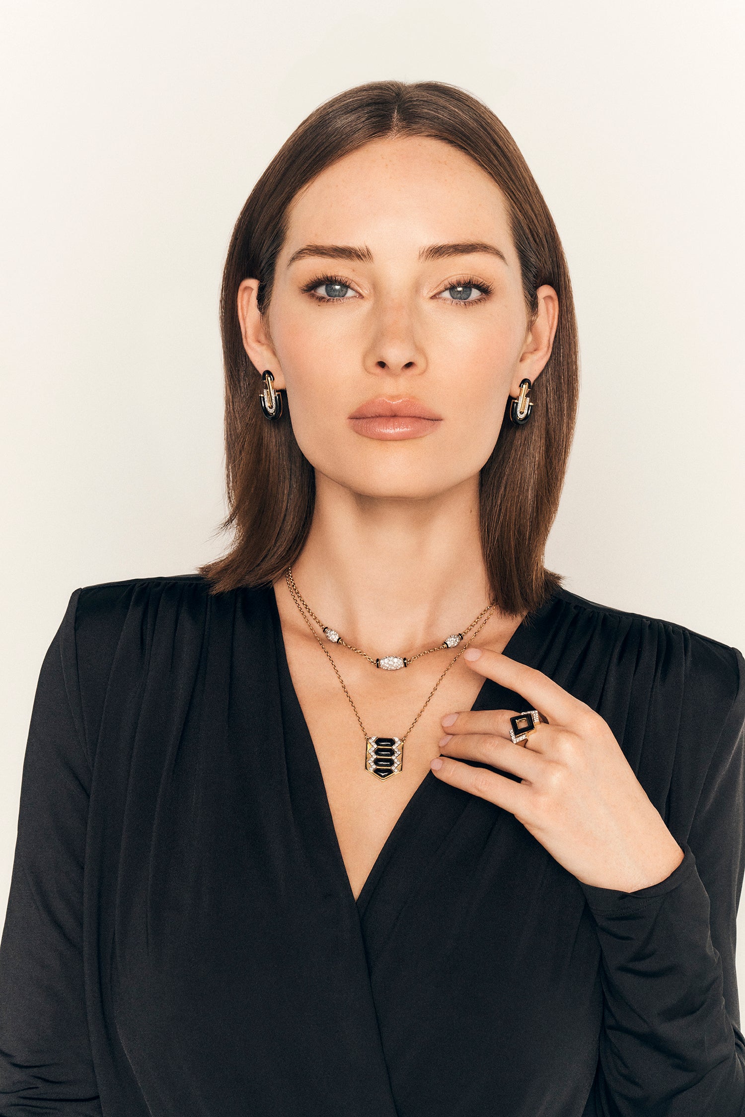 Shield Necklace, Black Enamel